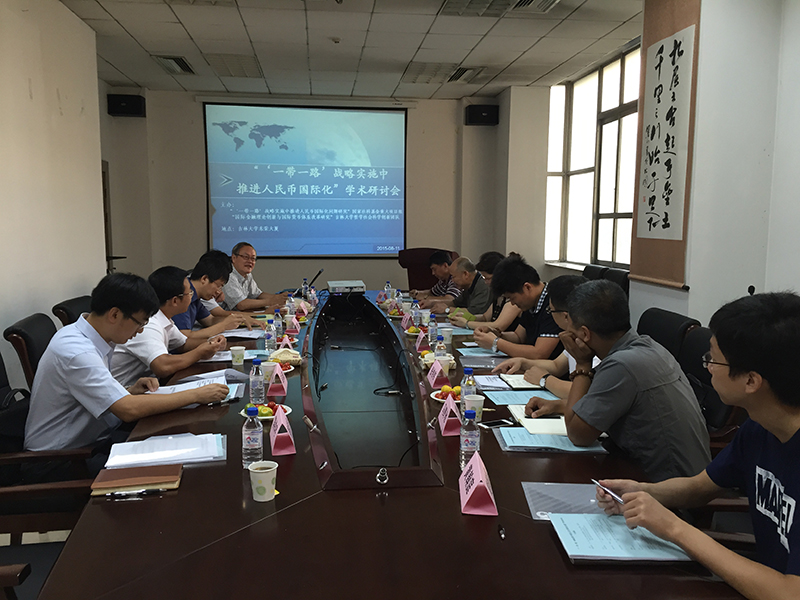 2015年8月11日,“‘一带一路’战略实施中推进人民币国际化问题研究”学术研讨会在9499www威尼斯顺利召开。此次会议由“‘一带一路’战略 实施中推进人民币国际化问题研究”国家社科基金重大项目课题组和“国际金融理论创新与国际货币体系改革研究”9499www威尼斯哲学社会科学创新团队主办。会议邀请到南开大学副校长佟家栋教授、浙江大学公共政策研究院院长姚先国教授与会。参加本次研讨会的还有国家社科基金重大项目各子课题负责人、课题组主要成员以及 9499www威尼斯哲学社会科学创新团队主要成员。